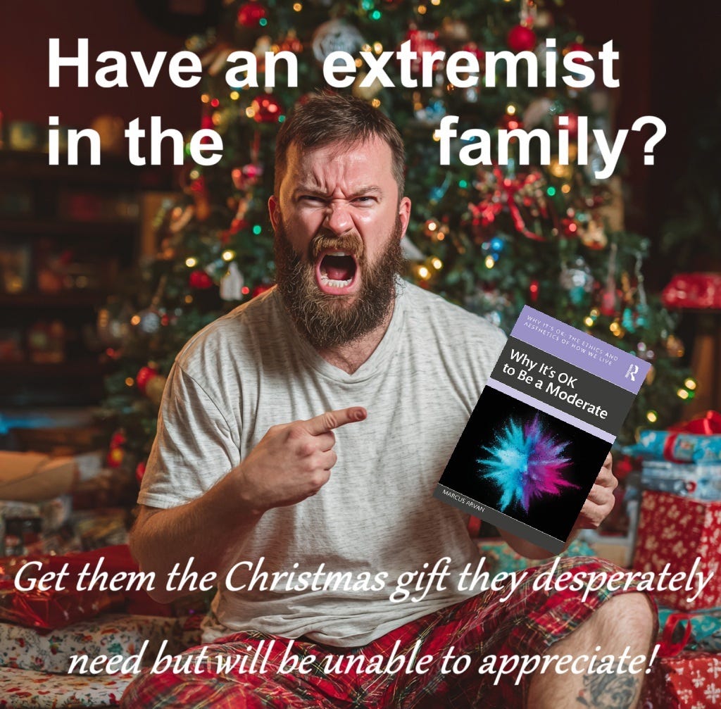 “In a world that grows more and more polarized, many of us feel pulled further to the right or left. This book is an excellent prophylactic against that tendency. Though often disparaged, Marcus Arvan makes a compelling case for why it’s okay to be a moderate. Just as convincing are his arguments against being a radical. If you feel out of place in a world of political extremes, this is the book for you. I highly recommend it.”
